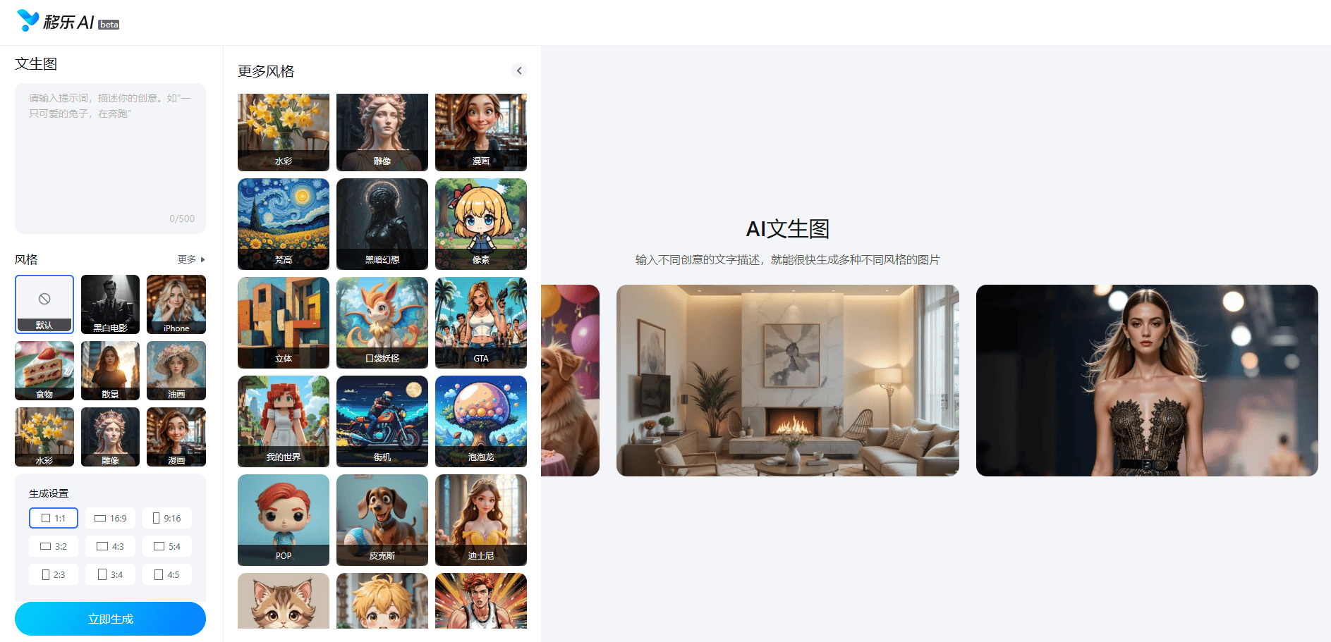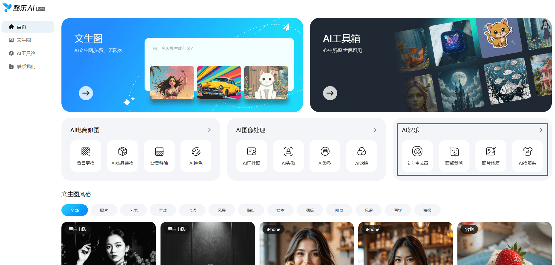 移乐文生图是移乐AI网坐目前从打“明星产物”,实正实现了AI手艺的普惠化,移乐AI以“免费所有AI产物”的斗胆决策,移乐AI的AI电商修图东西为电商从业者供给了驾轻就熟的处理方案。配合摸索人工智能取创意设想的无限可能。无需去剃头店,宝宝生成器能够满脚新手父母对将来宝宝容貌的猎奇,正在电商行业合作日益激烈的今天,仍是寻求高效处理方案的企业用户,是移乐科技正在AIGC范畴的一次主要结构。以留下夸姣回忆或展示奇特个性。